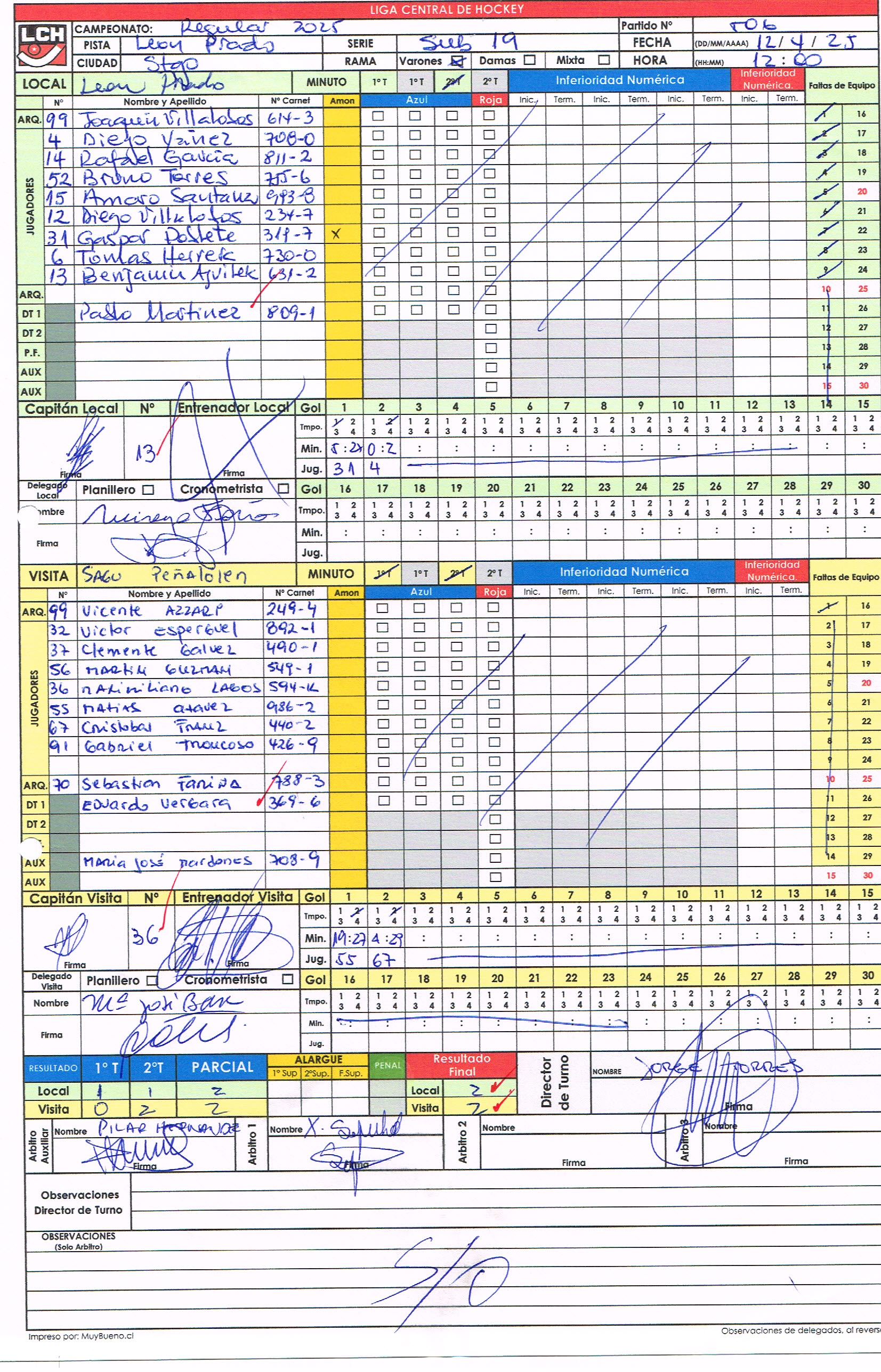 1-506 12/04/2025 12:00 León Prado León Prado 2 - 2 Sagu-Peñalolén Sagu-Peñalolén Finalizado Grupo 📄