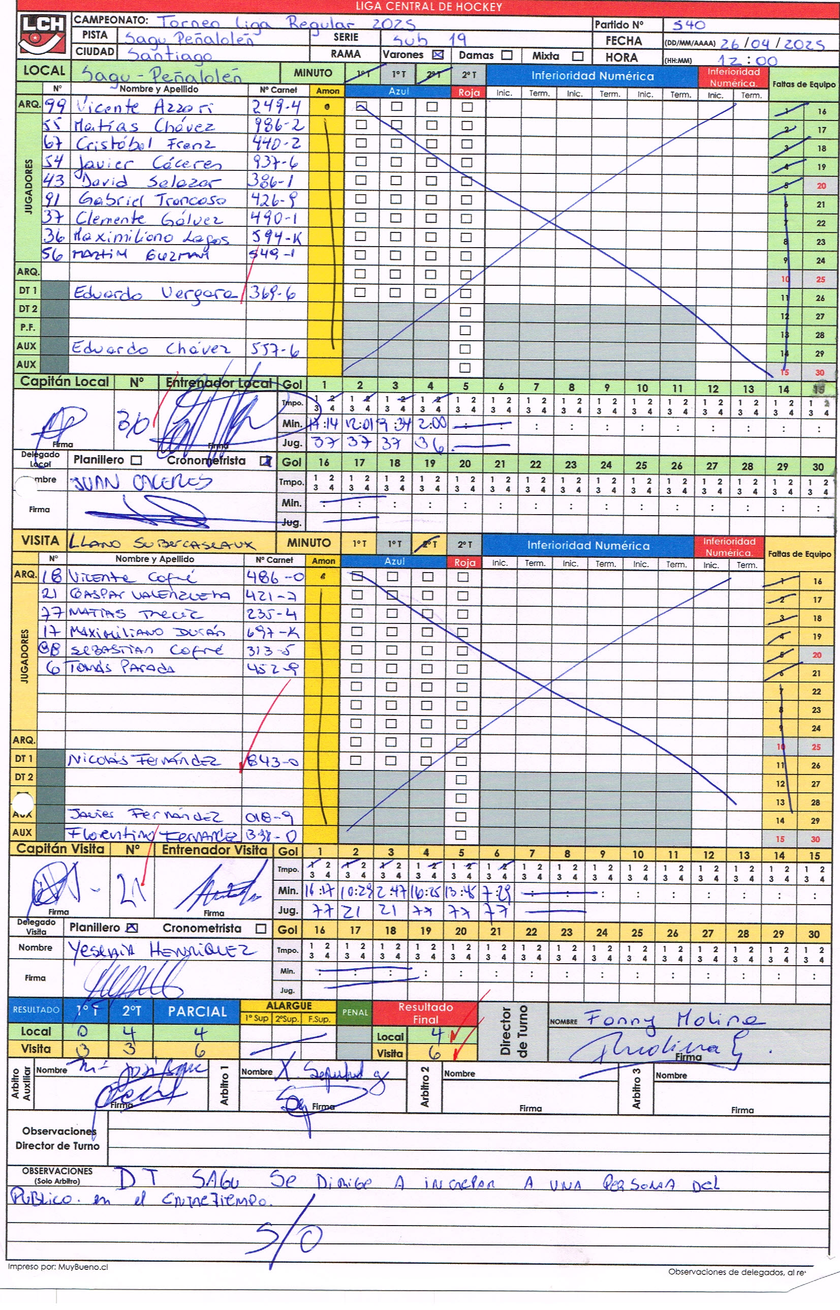 1-540 26/04/2025 12:00 Sagu-Peñalolén Sagu-Peñalolén 4 - 6 Llano Llano Finalizado Grupo 📄