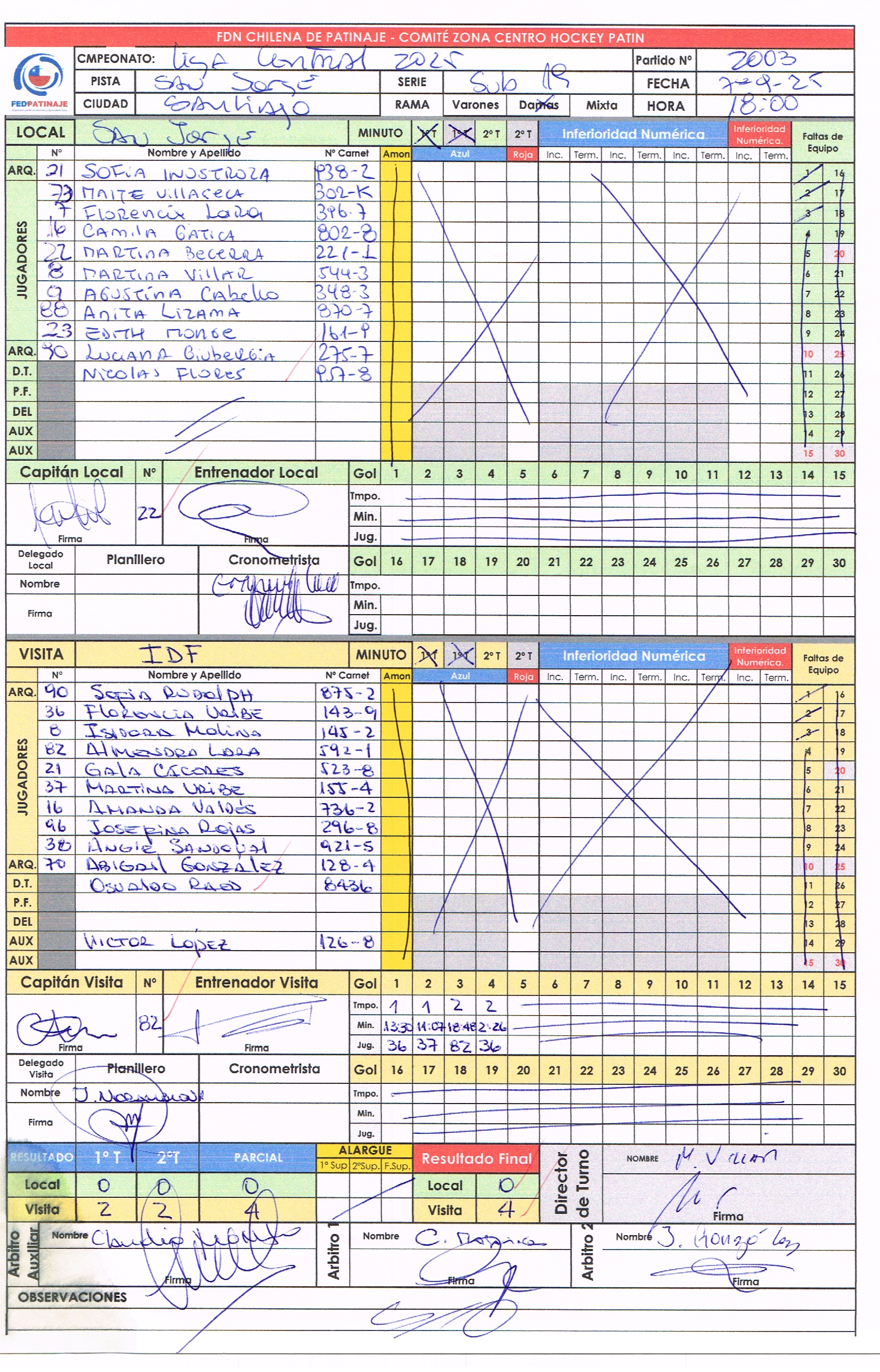 1-2069 13/09/2025 16:00 Usach Usach 2 - 13 San Jorge San Jorge Finalizado Grupo 📄