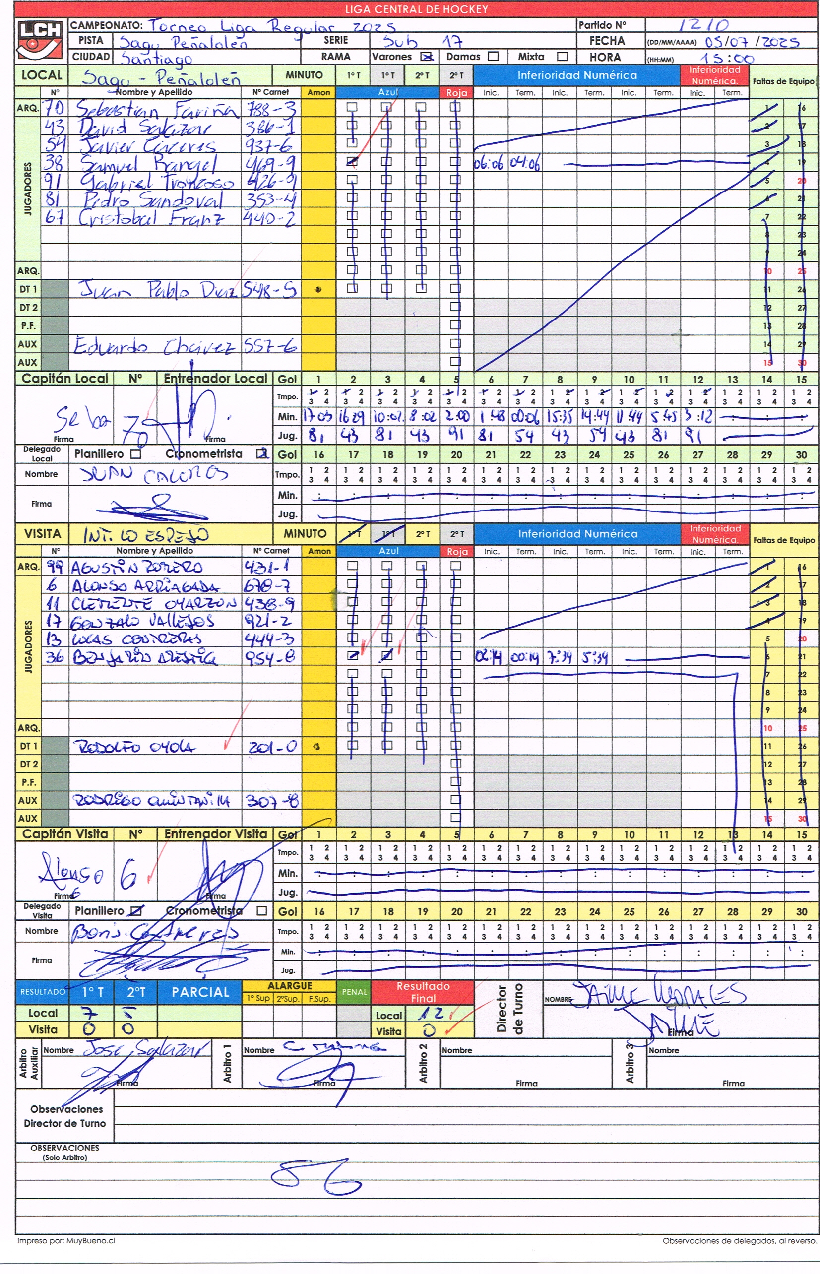 1-1210 05/07/2025 15:00 Sagu-Peñalolén Sagu-Peñalolén 12 - 0 Internacional Internacional Finalizado Grupo 📄