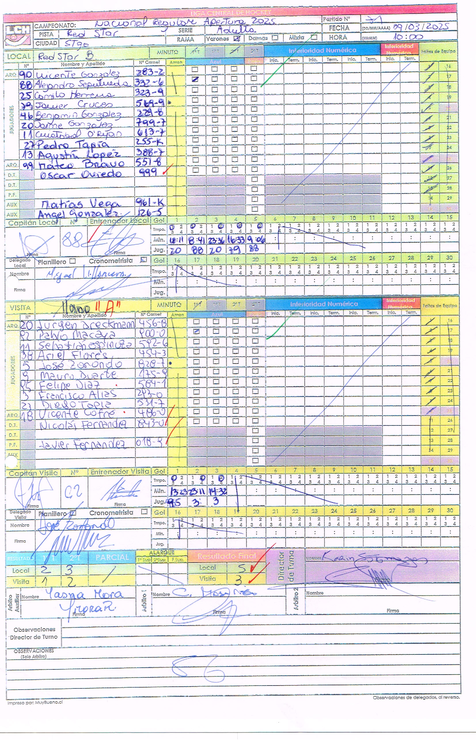| ID | Fecha | Local | Resultado | Visitante | Estado | Fase | Planilla |