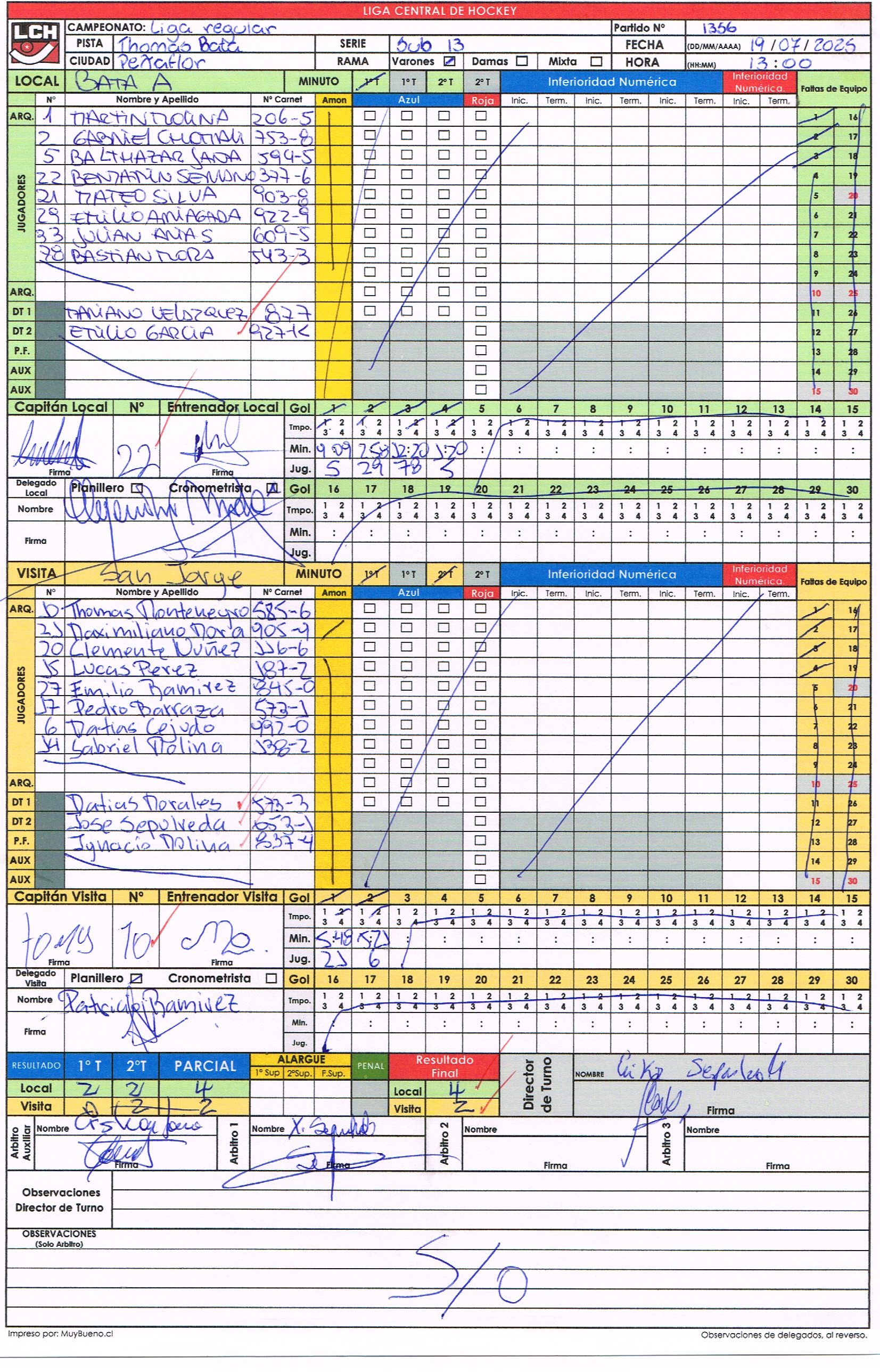 1-1356 19/07/2025 13:00 Bata Bata A 4 - 2 San Jorge San Jorge Finalizado Grupo 📄