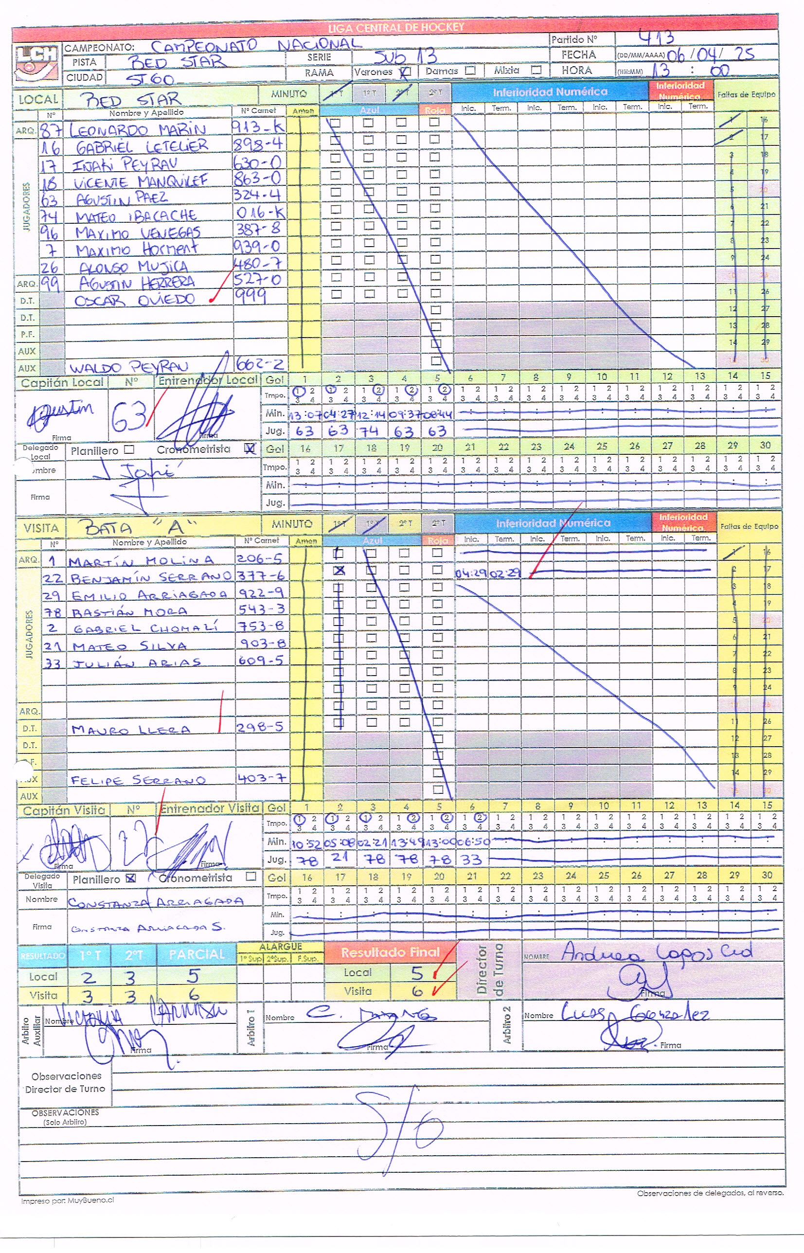 1-413 06/04/2025 13:00 Red Star Red Star 5 - 6 Bata Bata A Finalizado Grupo 📄