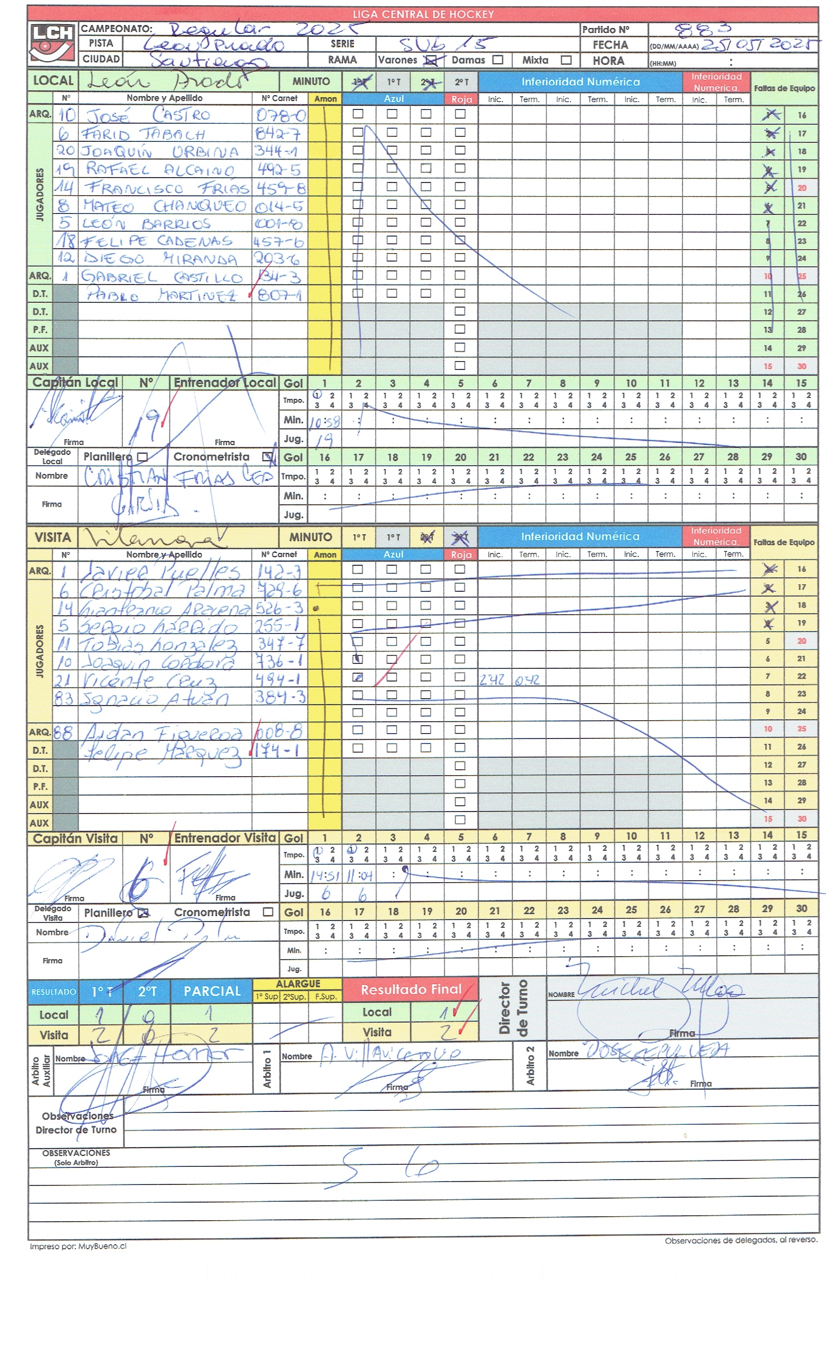 1-1549 17/08/2025 13:00 Sagu-Peñalolén Sagu-Peñalolén 3 - 4 León Prado León Prado Finalizado Grupo 📄